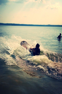 Someone decided to try the kiddy wake board (haha, he actually did pretty good)