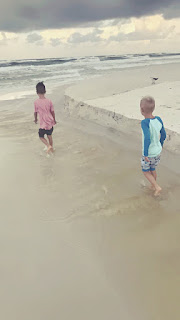 Feeding seagulls + building sand castles + catching HUGE jelly fish—"Gi-normous" (as Amari would say