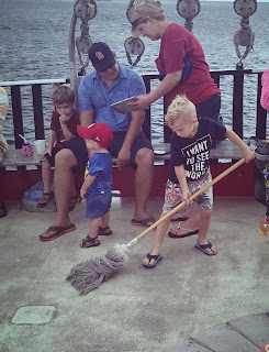 We ended the night by surprising the kids with tickets aboard the Pirate Sea Dragon (I had been telling Beckahm all week that pirates were spotted off the coast and we looked for clues the 3 days we were at the beach. When we pulled up to the dock and he saw the pirate ship and the "pirates" on board, he didn't know what to do 😃😃). It was seriously the coolest thing we have ever done with them! They got to squirt water guns at each other, mop the deck while the adults sat around watching 😂, fight with swords, shoot a canon, dance, get their face painted, get pirate tattoos and a pirate hat, and the highlight was being told a story about buried treasure and then they had to go spot the treasure marker out in the ocean and got to actually help pull it out of the water. They got to pick out 3 pieces of treasure. Oh my word! It was an experience they will never forget!